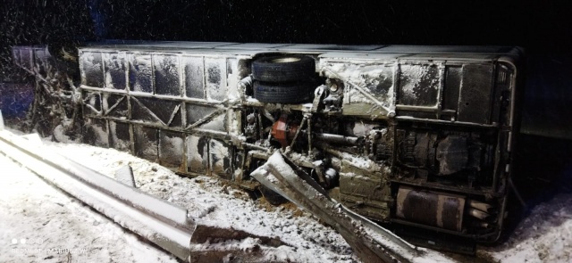 Policja powiadomiła, że kierujący autobusem (trzeźwy) nie dostosował prędkości do warunków panujących na drodze, w wyniku czego stracił panowanie nad pojazdem i zjechał do przydrożnego rowu po prawej stronie drogi. Autobus przewrócił się na bok. Pojazdem podróżowało pięcioro pasażerów, z czego troje zostało zabranych do szpitala w Ostrowi Mazowieckiej. Jedna z pasażerek, po badaniach, wróciła do domu.