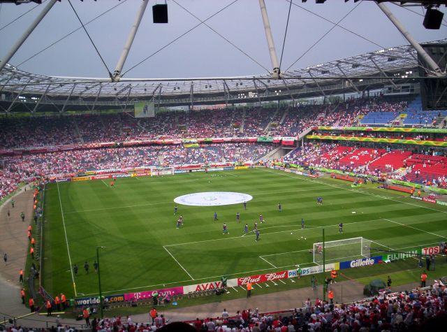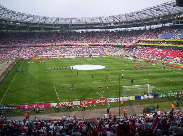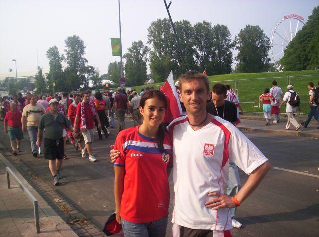 Jesteśmy pod stadionem. Wszystkie wejścia na sektory oznakowane bezbłędnie. Szukamy naszego sektora. Po krótkiej naprawdę odprawie na bramce wchodzimy na stadion...jest wspaniały ! Z zewnątrz nie robi takiego wrażenia. Nasze miejsca są wysoko. Płytę boiska wraz z rozgrzewającymi się zawodnikami widzimy jak na dłoni. Zapiera dech...tysiące biało-czerwonych na trybunach. Rozglądamy się – gdzieniegdzie widać grupki kibiców Kostaryki wymieszanych z naszymi. Gdzieniegdzie flagi niemieckie. Jest atmosfera wielkiego święta. Robimy sobie pamiątkowe zdjęcia i nagle...ktoś do nas krzyczy...rozglądamy się i widzimy znajomych z...Ostrowi !! Niesamowite, żeby 1100 kilometrów od Ostrowi spotkać się w 43.000 tłumie !