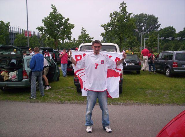 Przy Waterloo Platz był wielki telebim gdzie Niemcy mieli oglądać mecz z Ekwadorem. Ale Niemców dzisiaj prawie nie widać w tym mieście...To jest dzisiaj POLSKIE miasto ! Tutaj mały zgrzyt...chcieliśmy wejść jeszcze do knajpki. Ale knajpka była...NUR FUR DEUTSCHE ( skąd my to znamy ...? ). Dostaliśmy jakieś kartki z informacją po polsku i hiszpańsku gdzie będzie wyświetlany mecz Kostaryka-Polska...Nieważne. Idziemy dalej. Adrenalina rośnie z każdą minutą, z każdym krokiem. Już mam pewność, że było warto jechać tyle kilometrów. Dajemy się ponieść fali. Jest wspaniale. Atmosfera wielkiego wydarzenia, radości, zabawy. Kto pamięta teraz o tych dwóch przegranych meczach !?