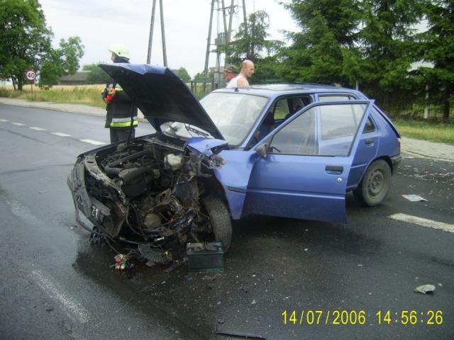 Dnia 14 lipca w Komorowie około godziny 15.00 na skrzyżowaniu ulic Mazowieckiej i Wodociągu doszło do zderzenia trzech samochodów osobowych marki peugeot, opel i fiat. Natychmiast przybyły jednostki policji i straży. Na szczęście nikomu nie stało się nic poważnego, chociaż pojazdy wyglądały tak jak by "ostro" dachowały. O mały włos nie doszło do następnego nieszczęścia, ponieważ zza zakrętu od strony Ostrowi jechał z dużą prędkością samochód ciężarowy, którego kierowca nie zauważył znaku informującego o kolizji. Kierujący samochodem w ostatniej chwili wyhamował i skończyło się na niewielkim rozbiciu karoserii. Po oględzinach i spisaniu protokołu samochody zostały odwiezione na lawetach, a miejsce zajścia uprzątnięte.
