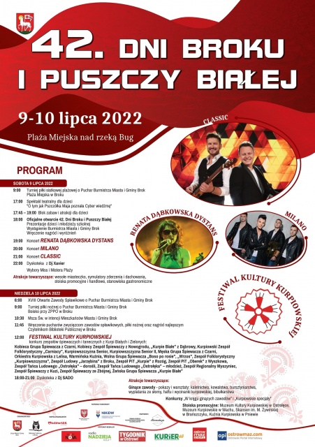 Po dwuletniej przerwie Urząd Gminy i Miasta Brok może zaprosić wszystkich ponownie na 42. "Dni Broku i Puszczy Białej", które odbędą się w dniach 9-10 lipca na Plaży Miejskiej w Broku.