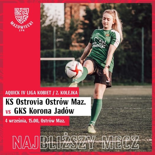 Drużyna kobiet KS Ostrovia już dziś o godz. 15:00 zawalczy o punkty w tabeli IV ligi kobiet z GKS Korona Jadów. Mecz odbędzie się na ostrowskim stadionie przy ul. Warchalskiego. Będzie to drugi mecz w tym sezonie.