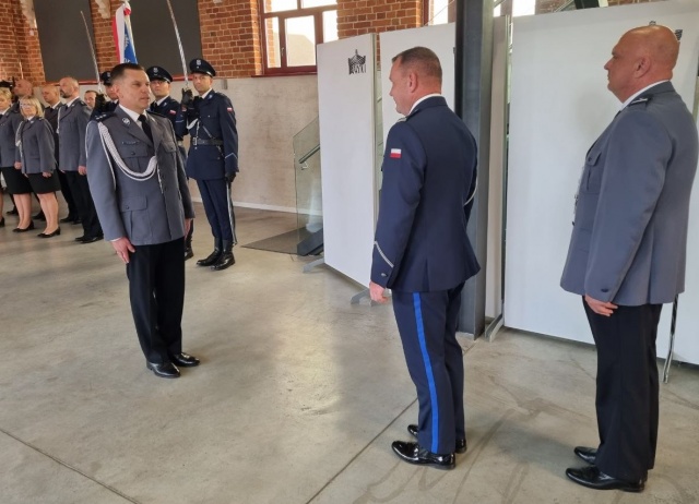 Komendant mł.insp Krzysztof Szymański serdecznie przywitał podinsp. Dariusza Bednarczyka wspominając, że I Z-ca pochodzi z terenu powiatu ostrowskiego, a zdobyte bogate doświadczenie jako Naczelnik Wydziału Kryminalnego KMP w Ostrołęce będzie nieocenione na nowym stanowisku.