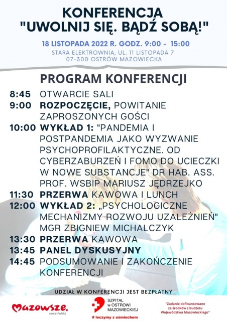 Ruszyły zapisy na BEZPŁATNĄ KONFERENCJĘ "Uwolnij się. Bądź sobą!", która odbędzie się 18 listopada 2022 r. w Ostrowi Mazowieckiej