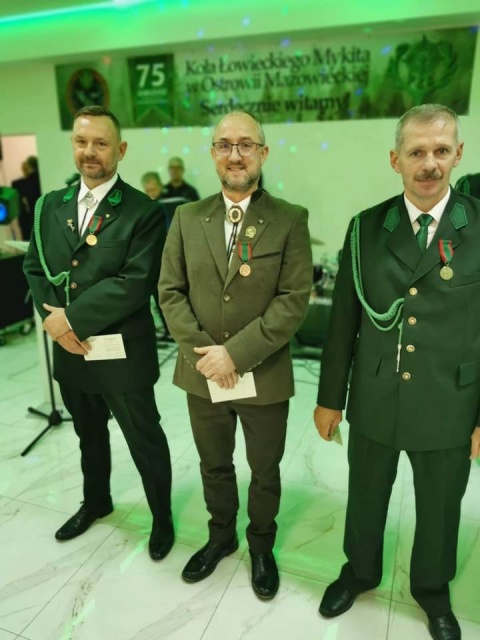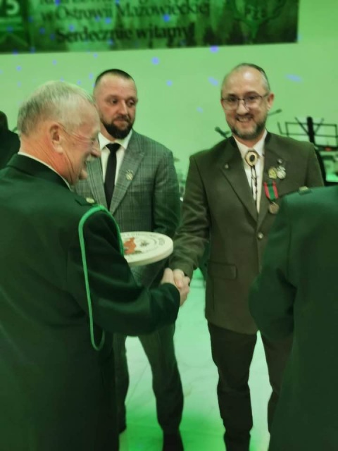 Gratulacje dla Marcina Raczko który otrzymał brązowy Medal Zasługi Łowieckiej i Ireneusza Raczko odznaczonego złotym Medalem Zasługi Łowieckiej.