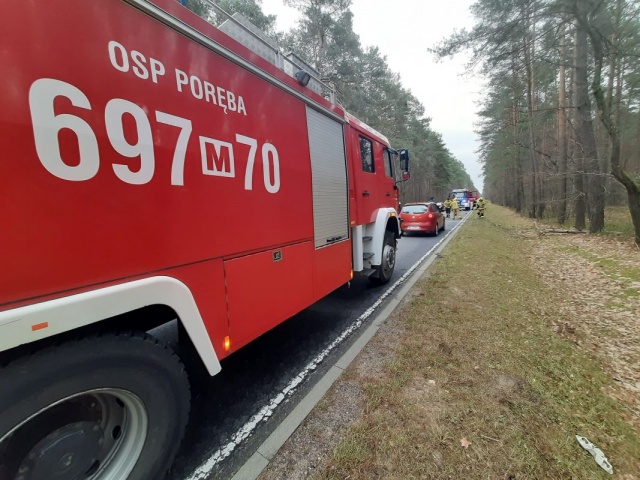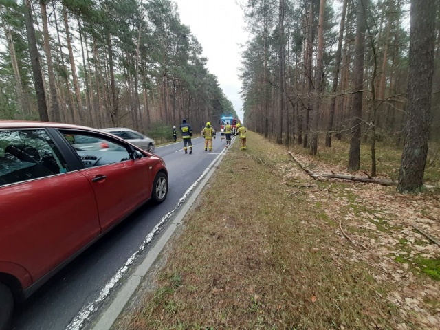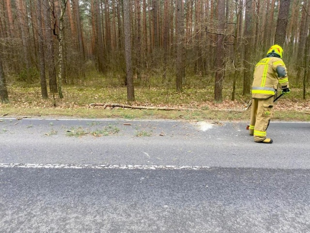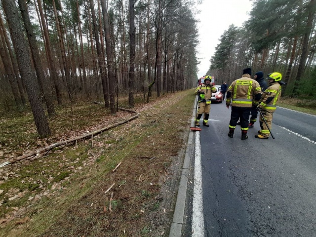 Drzewo zostało uprzątnięte przez wcześniej przybyłą jednostkę OSP z Poręby.