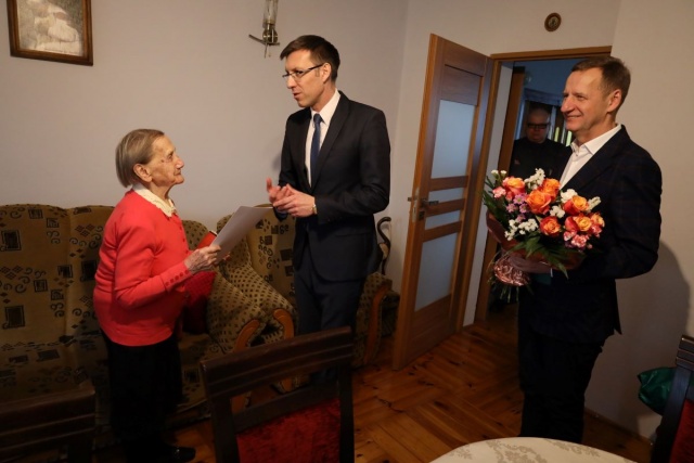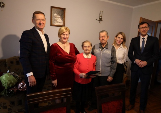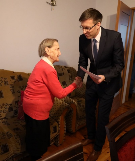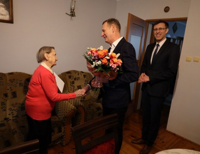 W dniu urodzin Jubilatkę odwiedzili Wójt Gminy Ostrów Mazowiecka Waldemar Brzostek oraz Kierownik Delegatury Mazowieckiego Urzędu Wojewódzkiego w Ostrołęce Marcin Grabowski, reprezentujący Premiera RP, którzy przekazali życzenia zdrowia na kolejne lata, spędzone w atmosferze miłości najbliższych.