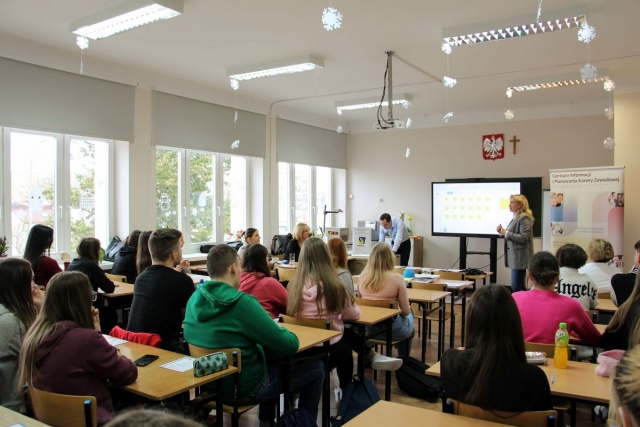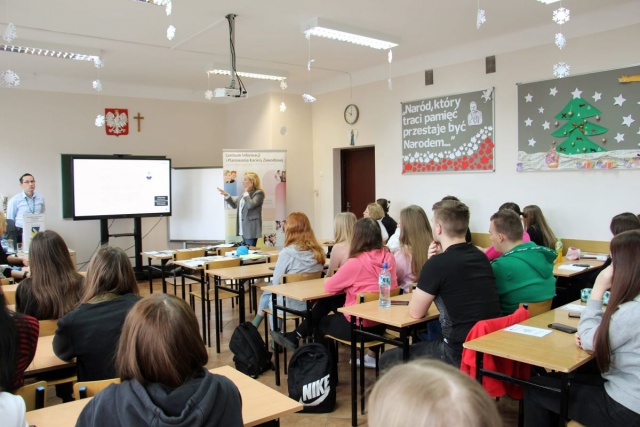W dniu 31 stycznia 2023 w ostrowskim Ekonomiku odbyło się spotkanie przedstawicieli PUP w Ostrowi Mazowieckiej i WUP w Ostrołęce z młodzieżą szkoły z klasami: I LOA i IV TIA. Spotkanie odbyło się w ramach programu "Gwarancja dla młodzieży". Program wsparcia młodych na rynku pracy, będącego częścią "Pakietu na rzecz zatrudnienia młodzieży" wypracowanego przez Komisję Europejską. Pracownicy urzędów przekazali młodzieży informacje na temat rynku pracy, omówili zasady otrzymania bonu na zasiedlenie, odbywania stażu oraz uzyskania pracy za granicą w ramach programu EURES. Spotkanie było bardzo ciekawe i czekamy na kolejne.