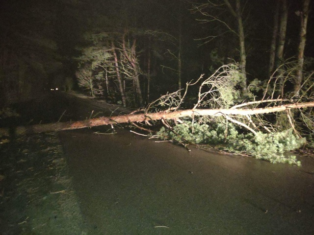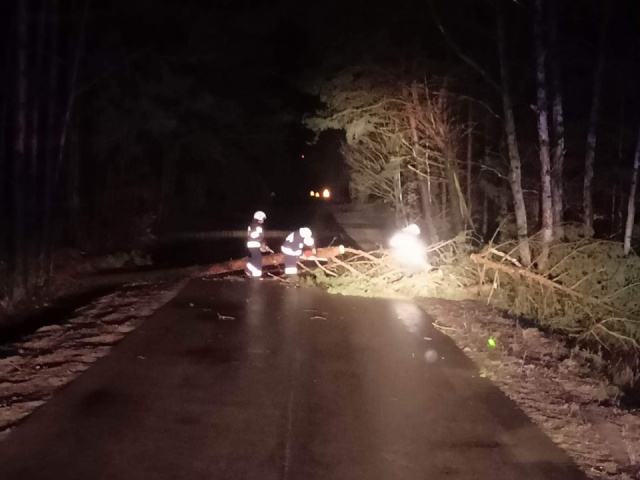 IMGW ogłosił stan alarmowy II stopnia dla powiatu ostrowskiego. W przypadku wichury na rozległą skalę, może dojść do poważnych zniszczeń i uszkodzeń budynków lub strat w przyrodzie. Powalone zostało duże drzewo na drodze przed Brzezienkiem. Strażacy z OSP Wąsewo usunęli drzewo z drogi.