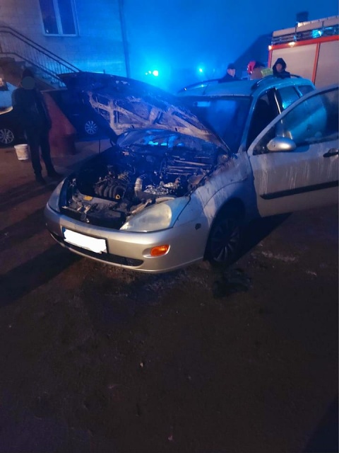 Jako pierwsi na miejsce zdarzenia przybyli strażacy z Ochotniczej Straży Pożarnej w Starym Lubotyniu. Już o godz. 5:17 dostali dyspozycję do płonącego pojazdu. Na miejscu zobaczyli palącego się Forda Focusa.