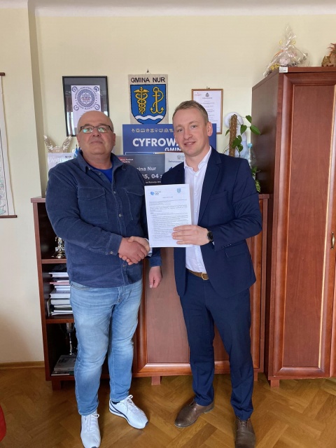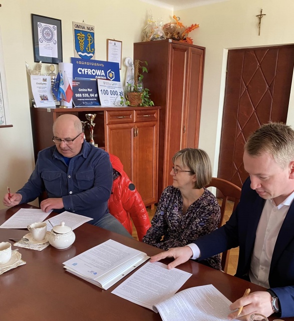 We wtorek, 4 kwietnia 2023, w siedzibie Urzędu Gminy w Nurze miało miejsce podpisanie umowy z Zakładem Robót Budowlano-Drogowych Tomasz Dawidowski z siedzibą w Ostrowi Mazowieckiej. Celem umowy jest wykonanie nowej nawierzchni bitumicznej na dwóch odcinkach w miejscowości Obryte.
