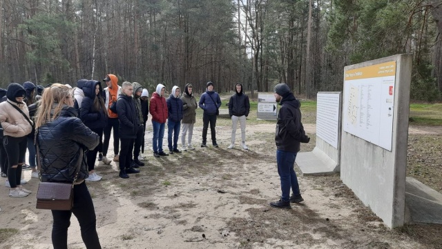 Następnie pod opieką pracownika muzeum uczniowie zwiedzili pozostałości dawnego Obozu Pracy - Treblinka I (punkt widokowy na żwirownię, pozostałości po barakach oraz miejsce straceń i symboliczne groby ofiar więźniów obozu pracy).