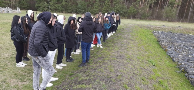 We wtorek, 4 kwietnia 2023, zwiedzali to szczególne miejsce uczniowie klasy II LO b wraz z nauczycielami historii. Wycieczka rozpoczęła się od zwiedzenia miejsca upamiętniającego stację kolejową w Treblince.