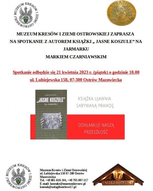 Już w przyszłym tygodniu Muzeum Kresów i Ziemi Ostrowskiej odwiedzi Marek Czarniawski. Okazją do spotkania będzie premiera nowego wydawnictwa autora, pt. "?Jasne Koszule? na Jarmarku". Książka jest monografią poświęcona działalności Stronnictwa Narodowego w województwie białostockim w okresie międzywojennym.