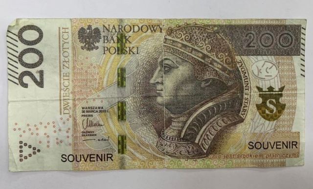 Nietrzeźwy 59-latek zapłacił w sklepie souvenirem przypominającym banknot 200 zł. Gdy mężczyzna jeszcze tego samego dnia wrócił do sklepu, kierowniczka sklepu powiadomiła dyżurnego ostrowskiej komendy o zdarzeniu. Wówczas został on zatrzymany przez policjantów.