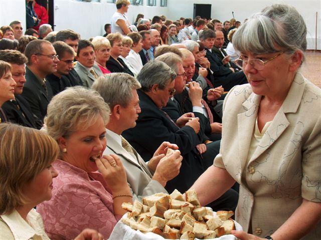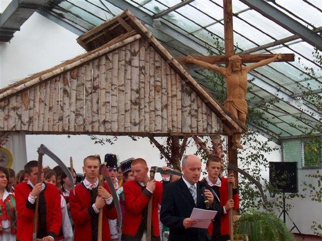 Ważnym punktem programu było wniesienie przez młodzież wieńców dożynkowych biorących udział w konkursie. Przedstawiciele siedmiu klas klas ZSCKP w Lubiejewie (III LO, II TMR, II ZSZ, IV TŻa , I TS, III LS, II TA), Euroklubu oraz Szkoły Podstawowej w Lubiejewie, ustawili swoje wieńce przed dożynkowym ołtarzem. Potem ksiądz Robert Śliwowski odprawił Mszę Świętą, która została również pięknie oprawiona muzycznie przez zespół Scholla. Po Mszy nastąpił obrzęd dzielenia się chlebem - Dyrektor szkoły Tadeusz Budzisz, jako gospodarz dożynek, wyraził podziękowanie za tenże przysłowiowy chleb oraz za pracę rolników, bez której nie byłoby chleba na żadnym polskim stole. Podczas dzielenia się chlebem wszyscy zebrani mieli okazję skosztować tradycyjnego, polskiego pieczywa.