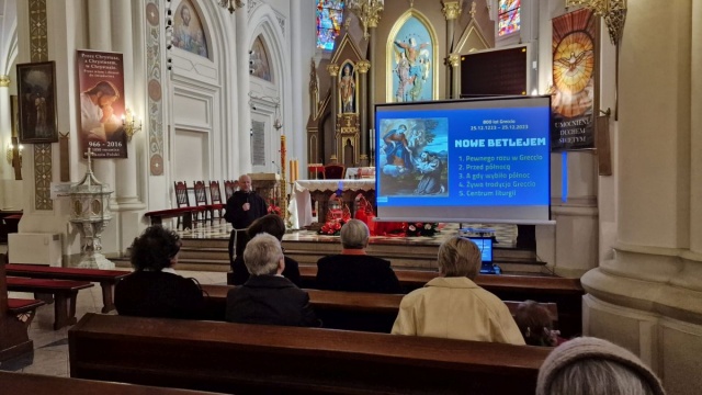 800 lat Greccio - 25.12.1223 - 25.12.2023 - to tytuł i temat spotkania III Zakonu Franciszkańskiego z Asystentem Narodowym Franciszkańskiego Zakonu Świeckich. Spotkanie rozpoczęła Msza Święta na której homilię wygłosił o. Andrzej. Po Eucharystii przyszedł czas na prezentację poświęconą zbliżającemu się 800 - leciu zorganizowania pierwszej Mszy Pasterskiej przez Św. Franciszka w Greccio. Uczestnikom spotkania przybliżona została historia wydarzeń organizacji i przebiegu pierwszej Pasterki. Zaprezentowane zostały dzieła upamiętniające to wydarzenie oraz wpływ jaki wywarło to wydarzenie na późniejsze postrzeganie i przeżywanie uroczystości Bożego Narodzenia.