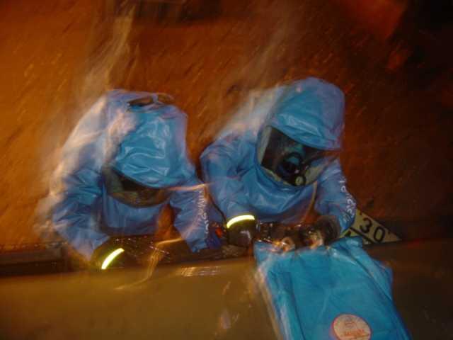 A na koniec sam \"smaczek\", wręcz artystyczne zdjęcie dwóch ratowników w ubraniach gazoszczelnych.