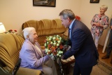 Delegacja z Urzędu Miasta i Mazowieckiego Urzędu Wojewódzkiego odwiedziły jubilatkę w domu.