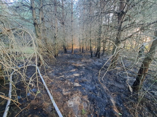 Strażacy za pomocą trzech prądów gaśniczych, zlokalizowali źródło ognia i pożar nie rozprzestrzenił się na większą powierzchnię lasu.