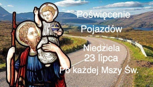 25 lipca w Kościele katolickim, jest dniem św. Krzysztofa, w którym błogosławi się wszelkiego rodzaju pojazdy, wzywając jego orędownictwa i opieki. Św. Krzysztof - męczennik podczas prześladowania Decjusza (III w.). Jest wiele sprzecznych legend na jego temat, między innymi że był barbarzyńcą z rodu olbrzymów psiogłowców i pustelnikiem syryjskim. Czyniąc pokutę przenosił podróżnych przez rzekę (również Dzieciątko Jezus).