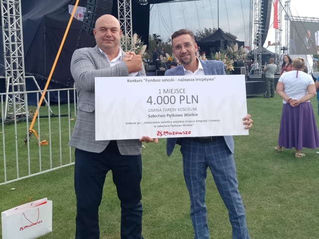Podczas dożynek województwa mazowieckiego w Bieżuniu, przedstawiciele sołectwa Pętkowo Wielkie odebrali nagrodę pieniężną za zwycięstwo w konkursie na najlepszą inicjatywę sołecką.