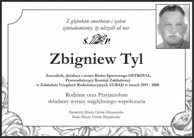 Dnia 3 września 2023, w wieku 67 lat, zmarł były zawodnik, działacz i trener Klubu Sportowego Ostrovia Ostrów Mazowiecka, Zbigniew Tyl. Był również przewodniczącym Komisji Zakładowej NSZZ SOLIDARNOŚĆ w Zakładzie Urządzeń Radiolokacyjnych ZURAD w latach 1993-2008.
