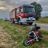 Kierujący Fiatem Grande Punto, 74-letni mieszkaniec powiatu ostrowskiego, nie ustąpił pierwszeństwa przejazdu motorowerowi marki Yamaha, kierowanemu przez 14-latka z powiatu ostrowskiego, w wyniku czego doszło do zderzenia pojazdów. Kierujący motorowerem został przewieziony do szpitala w Warszawie. Obaj kierujący trzeźwi.