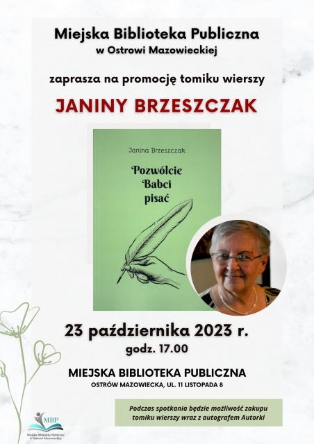 Podczas spotkania, które odbędzie się w poniedziałek, będzie również możliwość zakupu tomiku wraz z autografem autorki. Warto skorzystać z tej okazji, aby mieć wyjątkową pamiątkę od Janiny Brzeszczak. Wstęp na promocję jest całkowicie wolny, więc każdy miłośnik poezji czy osoba ciekawa twórczości autorki jest serdecznie zapraszany na to wyjątkowe wydarzenie.