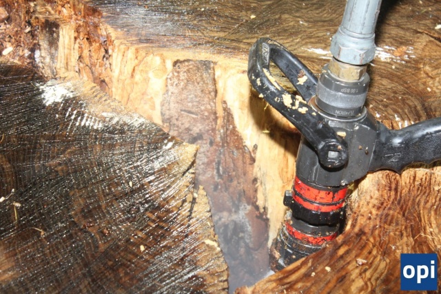 Do akcji gaszenia zadysponowano 1 zastęp PSP Ostrów Mazowiecka. Pień z korzeniami strażacy dokładnie przeleli wodą, by nie doszło do ponownego zapalenia.