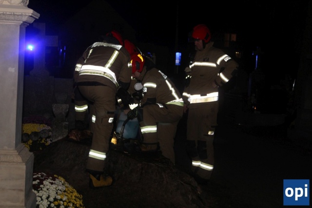 W bliskiej odległości znajdowały się nagrobki na których były łatwopalne sztuczne kwiaty i inne ozdoby.