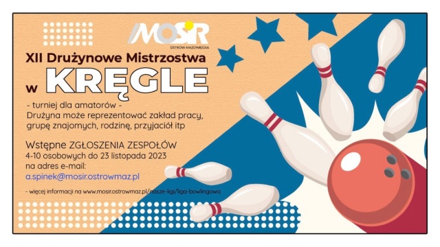 Po dłuższej przerwie ostrowski MOSiR wznawia rozgrywki Drużynowych Mistrzostw w Kręgle. Drużyna może reprezentować zakład pracy, grupę znajomych, rodzinę, przyjaciół itp.
