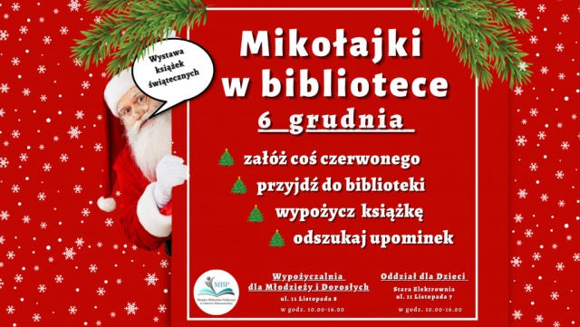 W czasie wystawy świątecznej uczestnicy będą mogli odszukać upominki oraz wypożyczyć książkę. Aby wziąć udział w poszukiwaniach upominków wystarczy założyć coś czerwonego.