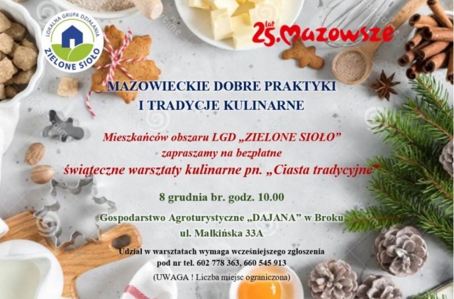 Warsztaty odbędą się 8 grudnia 2023 o godz. 10:00 w gospodarstwie agroturystycznym "Dajana", przy ul. Małkińskiej 33A w Broku.