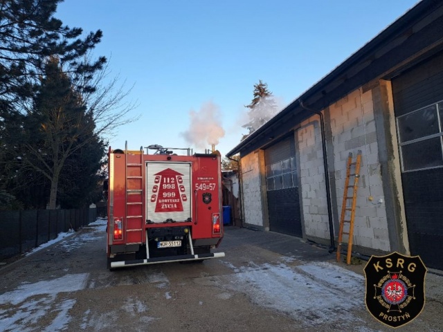 Nastąpiło rozszczelnienie komina, szybka interwencja strażaków zapobiegła rozprzestrzenieniu pożaru na pomieszczenia magazynowe budynku.