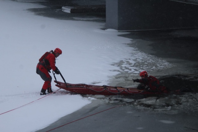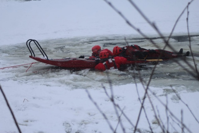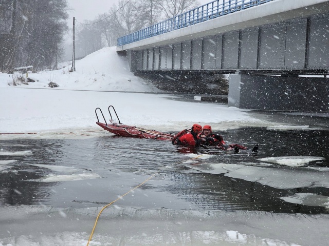 - Pogoda dziś była bardzo ciężka, silny wiatr, mocne opady śniegu- czyli idealna atmosfera do ćwiczeń. Dodatkowo wykorzystaliśmy miejsca, gdzie była dość cienka pokrywa lodu, aby warunki do działań były bardzo rzeczywiste i trudne. Po krótkiej odprawie przystąpiliśmy do ćwiczeń. Ratownicy w pełnej asekuracji, ubrani w suche skafandry podejmowali osobę poszkodowaną z wody przy użyciu sań lodowych - wspominają druhowie z Sadownego.
