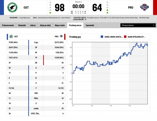 Sokół Ostrów Mazowiecka 98:64 Probasket Mińsk Mazowiecki