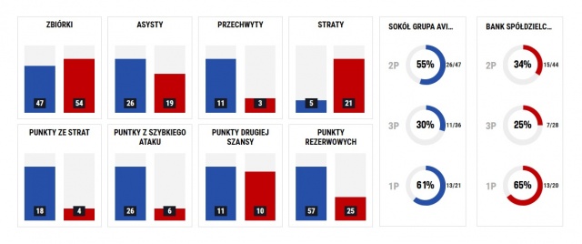 W drużynie gości najwięcej "wyrzucili": Dawid Kołodziński - 13, Bartosz Muda - 12 oraz Mikołaj Jesionek i Krzysztof Grudzień - po 9.