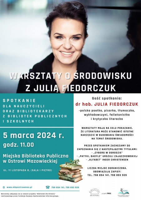 Wydarzenie odbędzie się 5 marca 2024 o godz. 11:00, w Miejskiej Bibliotece Publicznej w Ostrowi Mazowieckiej, przy ul. 11 Listopada 8. Warto zaznaczyć, że liczba miejsc jest ograniczona, dlatego wcześniejsze zapisy są obowiązkowe. Dokonać zapisu można telefonicznie, pod nr 798 894 141 lub 798 893 939.