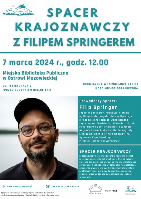 Wydarzenie jest częścią projektu "Biblioteki dla klimatu", który realizuje Fundacja Rozwoju Społeczeństwa Informacyjnego. To doskonała okazja, aby dowiedzieć się więcej o naszej okolicy oraz zrozumieć, jak możemy przyczynić się do jej ochrony i zachowania dla przyszłych pokoleń.