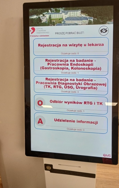 W rejestracji do poradni Samodzielnego Publicznego Zespołu Zakładów Opieki Zdrowotnej w Ostrowi Mazowieckiej funkcjonuje tzw. biletomat, który jest efektem wdrażania elektronicznego systemu kolejkowego pacjentów. System dźwiękowy wdrożono już 2 lutego 2024. Zamówione zostały ekrany stanowiskowe, na których wyświetlać się będzie numer otrzymany w biletomacie. System jest prosty i intuicyjny w obsłudze dla pacjentów.