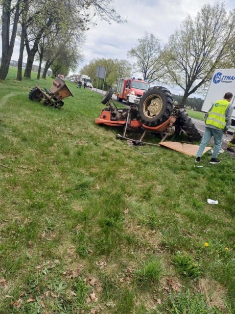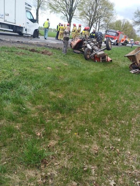 Według wstępnych ustaleń policji kierujący busem Renault 41-latek z powiatu podlaskiego wyprzedzając nieprawidłowo zderzył się z jadącym w ty samym kierunku ciągnikiem rolniczym. Kierujący ciągnikiem 65-letni mężczyzna z powiatu ostrowskiego został przewieziony przez Zespół Ratownictwa Medycznego do szpitala.