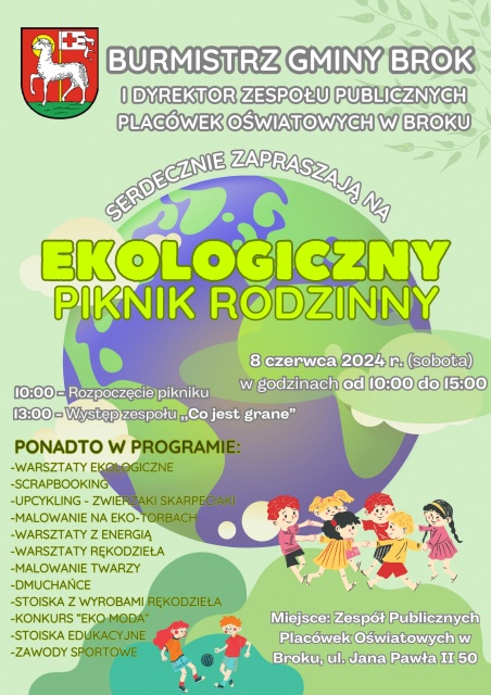 Na wydarzenie serdecznie zapraszają: burmistrz miasta i gminy Brok Sebastian Oczkowski oraz dyrektorka Zespołu Publicznych Placówek Oświatowych w Broku Joanna Ciskowska. Wydarzenie odbędzie się w sobotę, 8 czerwca 2024, w godz. 10:00-15:00, na terenie ZPPO, przy ul. Jana Pawła II 50 w Broku.