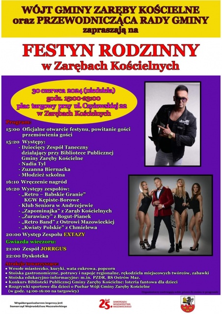 W imieniu organizatorów, serdecznie zapraszamy wszystkich mieszkańców oraz gości na Festyn Rodzinny w Zarębach Kościelnych! To dobra okazja do wspólnego świętowania, integracji lokalnej społeczności i mile spędzonego czasu z całą rodziną.