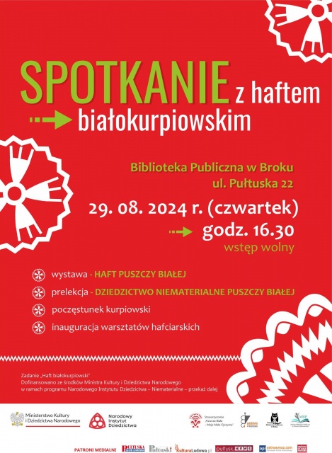Zadanie "Haft białokurpiowski" jest realizowane dzięki dofinansowaniu ze środków Ministra Kultury i Dziedzictwa Narodowego w ramach programu Narodowego Instytutu Dziedzictwa Niematerialnego.