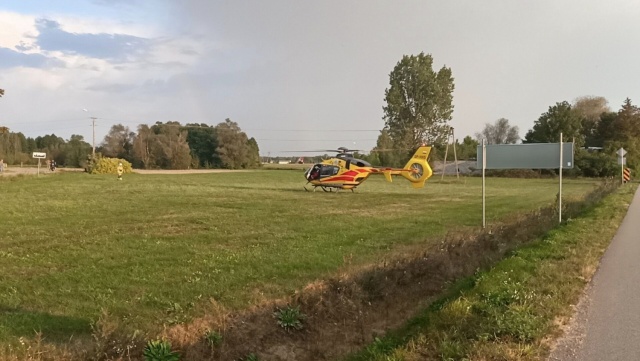 Na skutek zderzenia motorowerzysta odniósł poważne obrażenia i wymagał natychmiastowej pomocy medycznej. Został przetransportowany śmigłowcem Lotniczego Pogotowia Ratunkowego do szpitala w Warszawie.