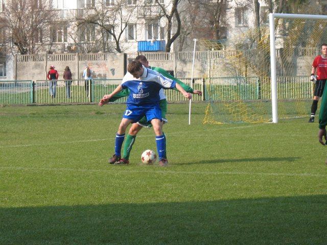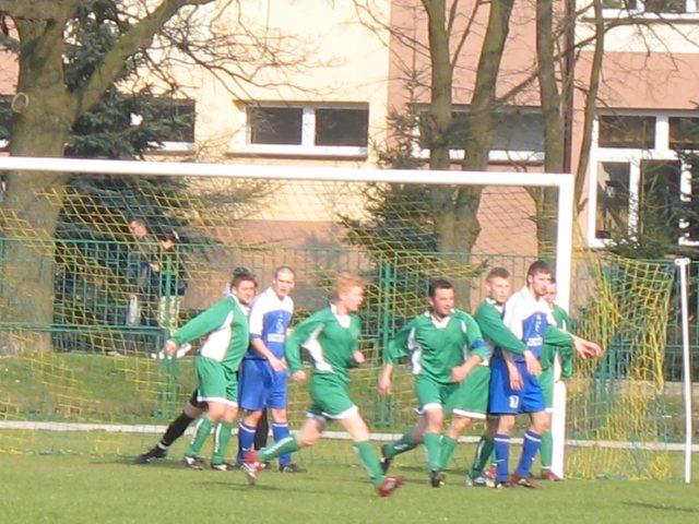 Odpowiedź naszego zespołu była natychmiastowa. Akcja prawą stronę, wreszcie dośrodkowanie i błąd bramkarza i obrońcy gości wykorzystuje Tomek Rępa. Chwilę potem dokładne rozegranie piłki w środku pola i na czystą pozycje wyszedł Sławek Rózański, który łatwo pokonuje golkipera gości. Mija kilka minut i znów przed szansą stają nasi piłkarze, ale brakuje skuteczności. Chwila nieuwagi i kontaktowego gola zdobywają goście. Tym razem nie popisał się Rafał Rakowiecki, który tak długo trzymał piłkę, że wreszcie ją stracił na rzecz napastnika gości, który strzałem do pustej bramki zdobywa honorowego gola dla zespołu GKS-u. Na szczęście ponownie szybko opowiada nasz zespół. A właściwie T. Rępa, który kapitalnym strzałem z 20 metrów w tzw. okienko zdobywa swoją drugą bramkę.