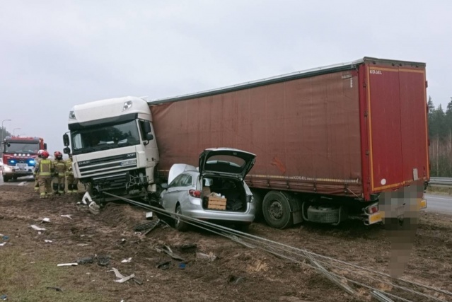 Oba pojazdy, po zderzeniu, zatrzymały się na pasie zieleni. Zablokowany był jeden pas ruchu w kierunku Warszawy i jeden w kierunku Białegostoku, co spowodowało utrudnienia w ruchu. Na szczęście zarówno kierowca opla, jak i ciężarówki, wyszli z kolizji bez obrażeń.