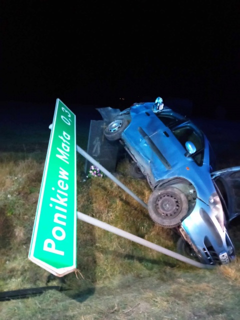 Jako pierwsi o sprawie poinformowali strażacy z Ochotniczej Straży Pożarnej w Goworowie. Zostali zadysponowani do akcji o godz. 3:04. Na opublikowanym przez nich zdjęciu widać, że pojazd, który wypadł z drogi, zatrzymał się na drogowskazie wskazującym nazwę miejscowości oraz na stojącej obok kamiennej tablicy upamiętniającej tragiczny wypadek.