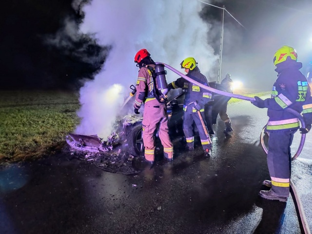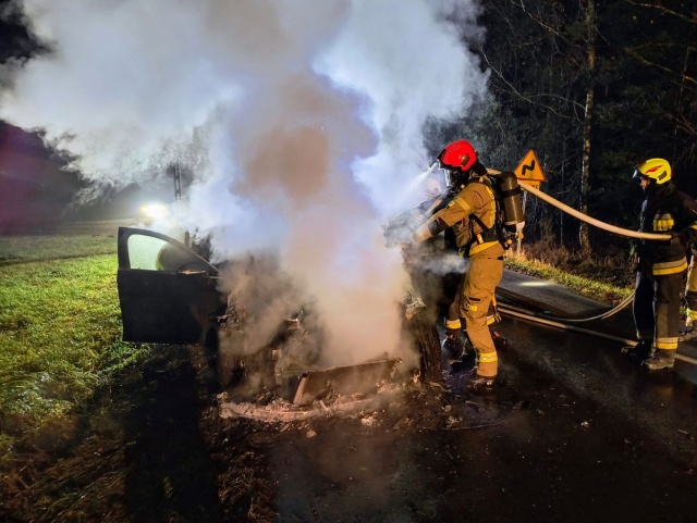 Na miejscu strażacy stwierdzili, że ogień objął komorę silnika pojazdu i zdążył przenieść się na deskę rozdzielczą. Na szczęście kierowca podróżujący samotnie zdołał opuścić samochód przed przybyciem służb ratunkowych i nie odniósł obrażeń.